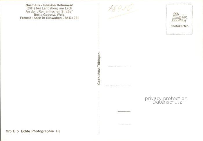 41783822 Landsberg Lech Gasthaus Pension Hohenwart postalisch nicht gelaufen Erhaltung siehe scans KatCode: 11110009181130