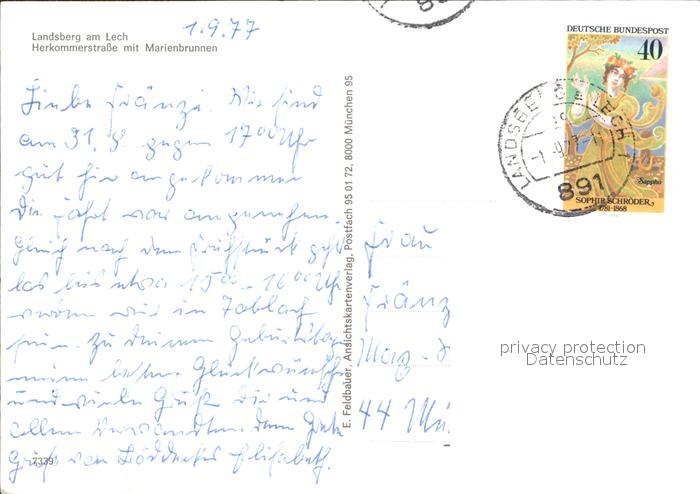 72139782 alte Postkarte Landsberg Lech Herkommerstrasse mit Marienbrunnen postalisch gelaufen Erhaltung siehe scans KatCode: 11110009181130