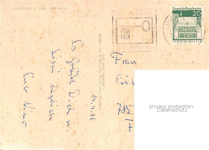 72918570 alte Postkarte Landsberg Lech Marktplatz Brunnen Tor postalisch gelaufen Erhaltung siehe scans [FriedD77] KatCode: 11110009181130