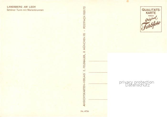 73177856 Landsberg Lech Schoener Turm mit Marienbrunnen postalisch nicht gelaufen Erhaltung siehe scans [FriedD77] KatCode: 11110009181130
