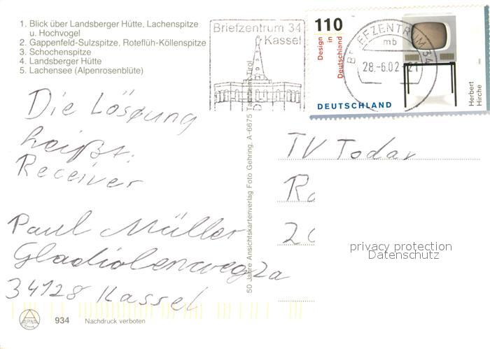73195952 alte Postkarte Landsbergerhuette Lachenspitze Hochvogel Gappenfeld Sulzspitze Roteflueh postalisch gelaufen Erhaltung siehe scans [KathaD81] KatCode: 11390331070832
