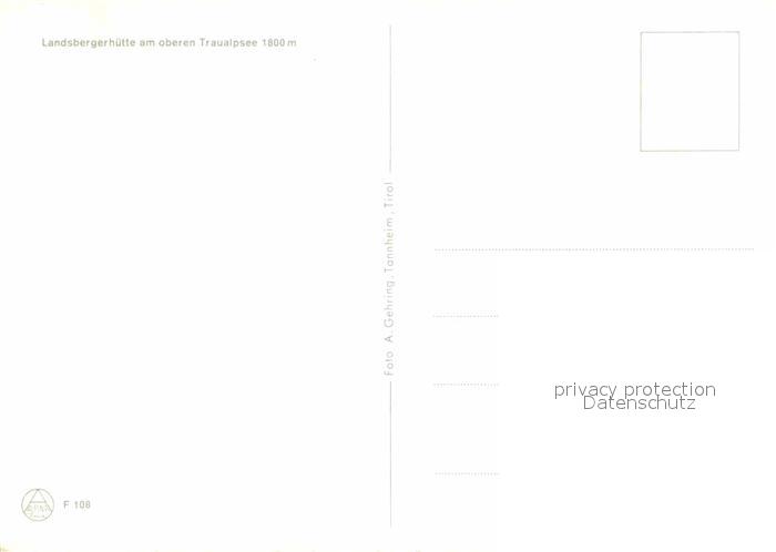 72849451 Landsbergerhuette Traualpsee postalisch nicht gelaufen Erhaltung siehe scans [KathaD81] KatCode: 11390331070832