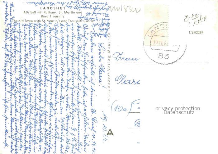 74104628 alte Postkarte LANDSHUT Isar Altstadt mit Rathaus St Martin und Burg Trausnitz postalisch gelaufen Erhaltung siehe scans [WerneD78] KatCode: 11110009261000