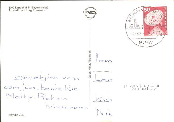 72305135 alte Postkarte Landshut Isar Altstadt und Burg Trausnitz postalisch gelaufen Erhaltung siehe scans KatCode: 11110009261000