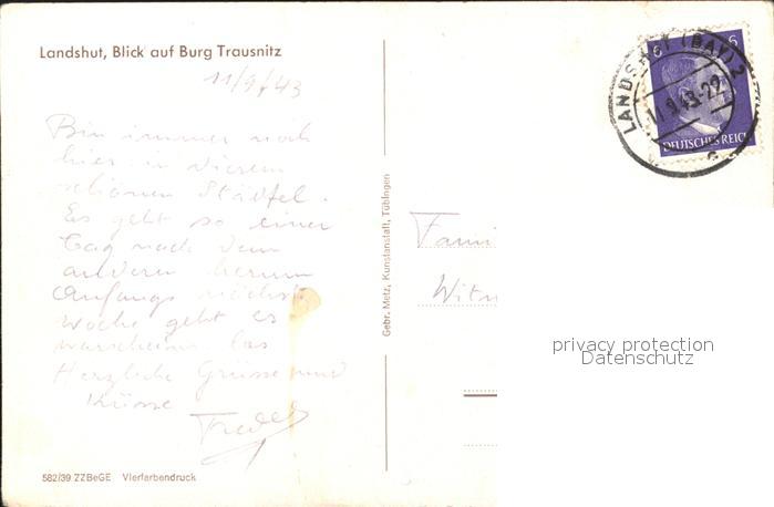 71727354 alte Postkarte Landshut Isar Blick auf Burg Trausnitz Kuenstlerkarte postalisch gelaufen Erhaltung siehe scans KatCode: 11110009261000