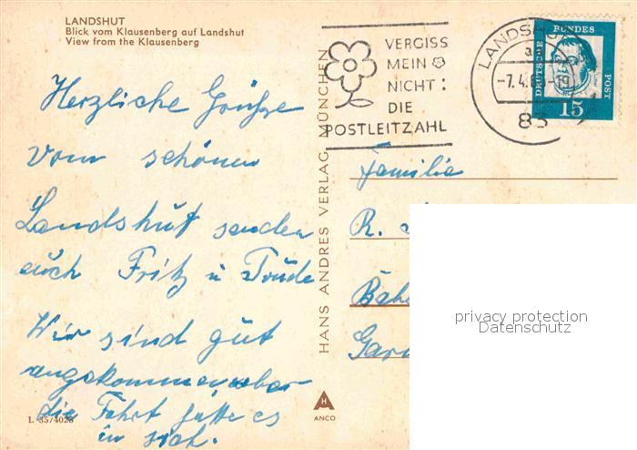 72844934 alte Postkarte Landshut Isar Blick vom Klausenberg postalisch gelaufen Erhaltung siehe scans [LiesaD40] KatCode: 11110009261000
