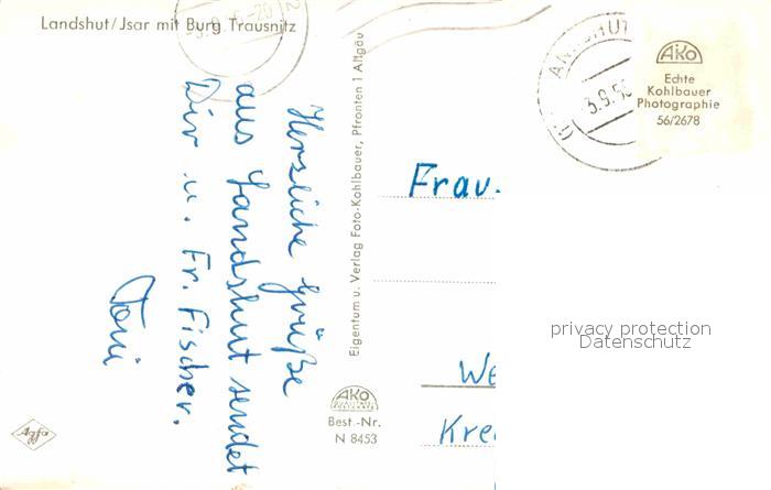 72854896 alte Postkarte Landshut Isar Burg Trausnitz postalisch gelaufen Erhaltung siehe scans [WerneD78] KatCode: 11110009261000