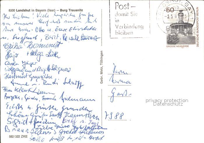 72325771 alte Postkarte Landshut Isar Burg Trausnitz postalisch gelaufen Erhaltung siehe scans KatCode: 11110009261000