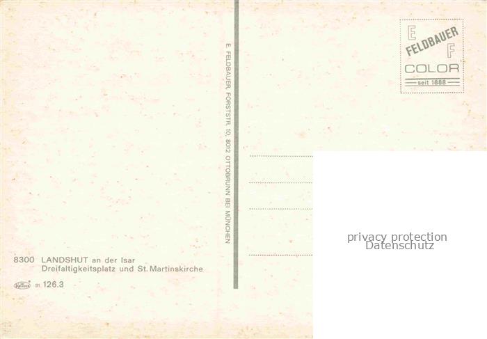 74121848 LANDSHUT Isar Dreifaltigkeitsplatz und St Martinskirche postalisch nicht gelaufen Erhaltung siehe scans [WerneD78] Wern Katcode 11110009261000