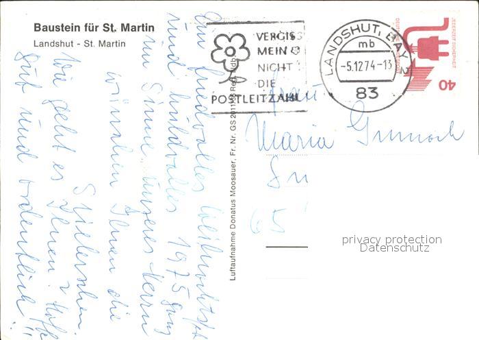 72921431 alte Postkarte Landshut Isar Fliegeraufnahme St. Martin postalisch gelaufen Erhaltung siehe scans [LiesaD40] KatCode: 11110009261000