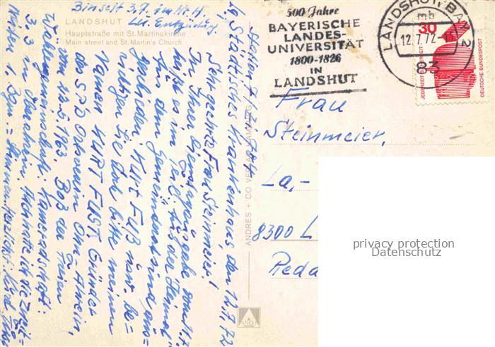 74035083 alte Postkarte LANDSHUT Isar Hauptstrasse mit St. Martinskirche postalisch gelaufen Erhaltung siehe scans [FriedD77] KatCode: 11110009261000