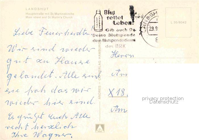 72854658 alte Postkarte Landshut Isar Hauptstrasse mit St. Martinskirche postalisch gelaufen Erhaltung siehe scans [LiesaD40] KatCode: 11110009261000