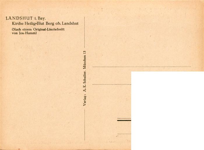73888495 Landshut Isar Kirche Heilig Blut Berg ob Landshut Linolschnitt postalisch nicht gelaufen Erhaltung siehe scans [FriedD77] KatCode: 11110009261000