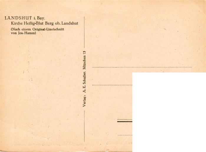 73887849 Landshut Isar Kirche Heilig Blut Linolschnitt postalisch nicht gelaufen Erhaltung siehe scans [FriedD77] KatCode: 11110009261000