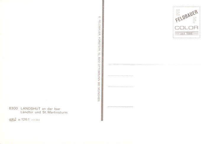 73909541 Landshut Isar Landtor und St Martinsturm postalisch nicht gelaufen Erhaltung siehe scans [WerneD78] KatCode: 11110009261000