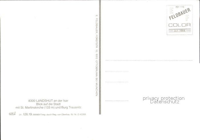 72289794 Landshut Isar Sankt Martinskirche Burg Trausnitz postalisch nicht gelaufen Erhaltung siehe scans KatCode: 11110009261000