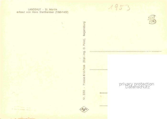 72898630 Landshut Isar St. Martin postalisch nicht gelaufen Erhaltung siehe scans [PaolaD17] KatCode: 11110009261000