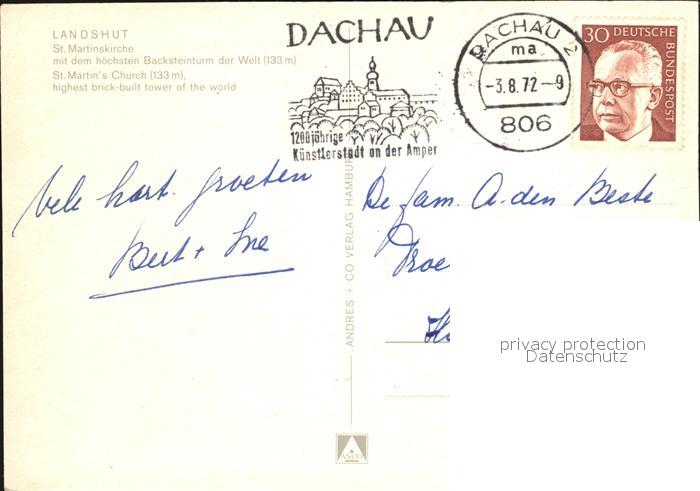 alte Postkarte Landshut Isar St. Martinskirche postalisch gelaufen Erhaltung siehe scans