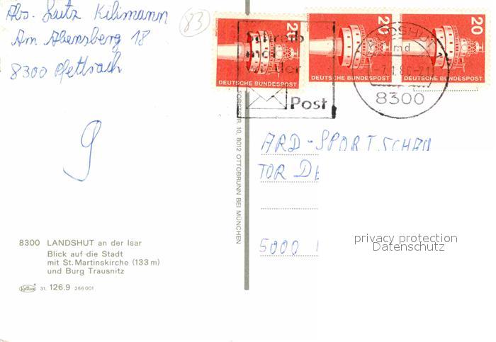 72866757 alte Postkarte Landshut Isar St. Martinskirche Burg Tausnitz postalisch gelaufen Erhaltung siehe scans [NatalD47] KatCode: 11110009261000