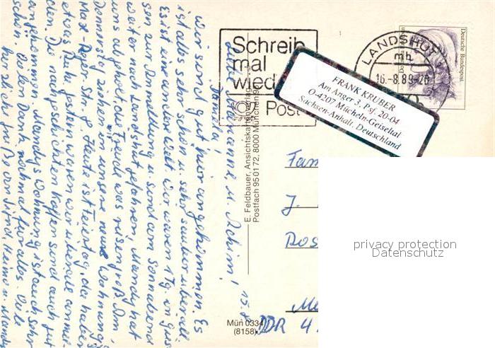 73266946 alte Postkarte Landshut Isar Stadtpanorama mit Kirche Innenstadt Strassencafe Giebelhaeuser Burg Trausnitz postalisch gelaufen Erhaltung siehe scans [FriedD77] KatCode: 11110009261000