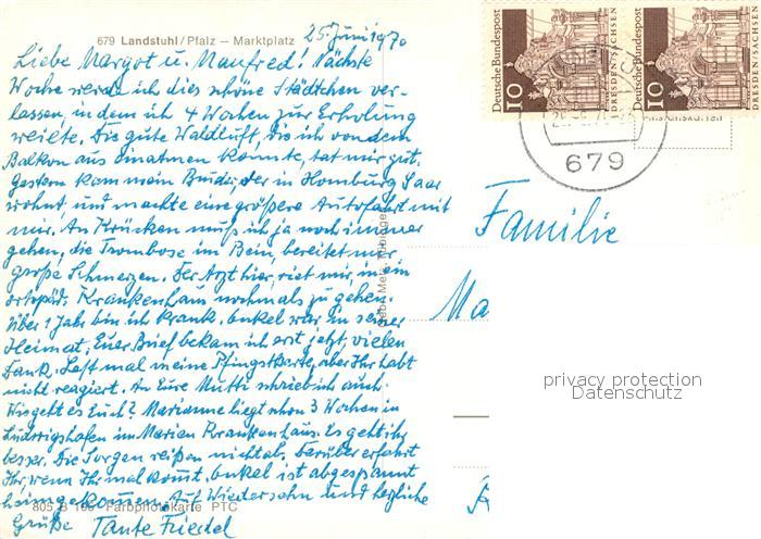 73257551 alte Postkarte Landstuhl Marktplatz Brunnen postalisch gelaufen Erhaltung siehe scans [FriedD77] KatCode: 11110007335022