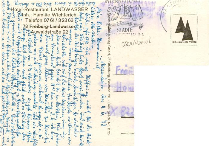 73932775 alte Postkarte Landwasser Freiburg Breisgau Hotel Restaurant Landwasser postalisch gelaufen Erhaltung siehe scans [WerneD78] KatCode: 11110008311000