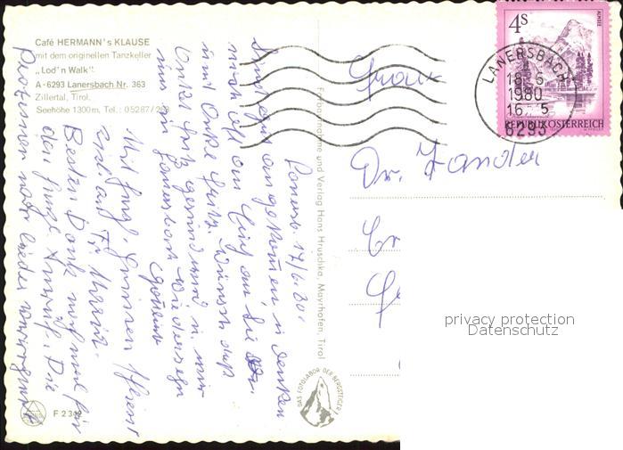 72492260 alte Postkarte Lanersbach Cafe Hermanns Klause postalisch gelaufen Erhaltung siehe scans KatCode: 11390335070908