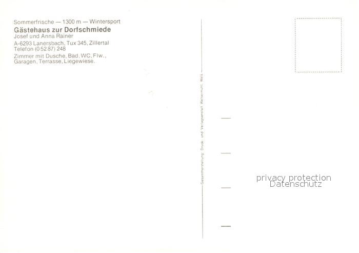 73590993 Lanersbach Gaestehaus zur Dorfschmiede postalisch nicht gelaufen Erhaltung siehe scans [KathaD81] KatCode: 11390335070908