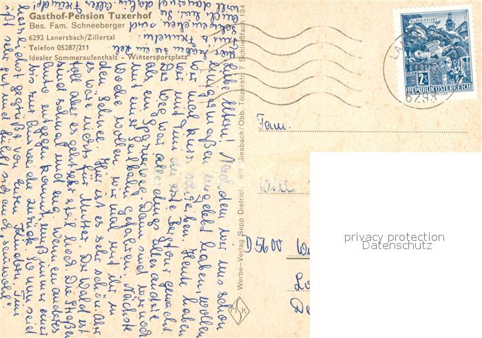 12975291 alte Postkarte Lanersbach Gashof Tuxerhof postalisch gelaufen Erhaltung siehe scans [NatalD47] KatCode: 11390335070908