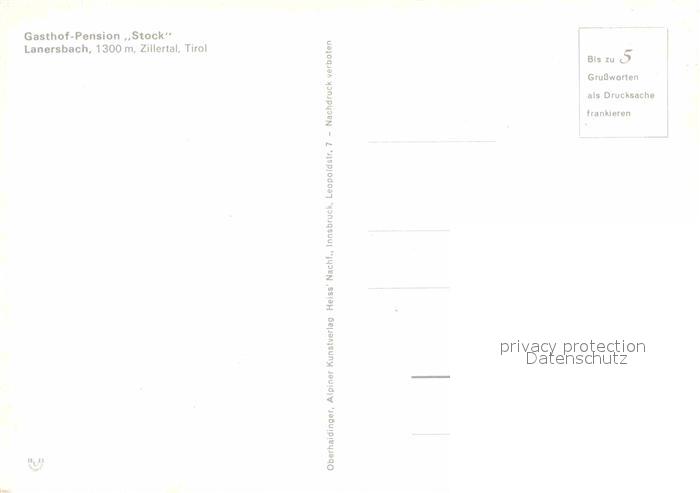 72839495 Lanersbach Gasthof Pension Stock postalisch nicht gelaufen Erhaltung siehe scans [AndreD76] KatCode: 11390335070908