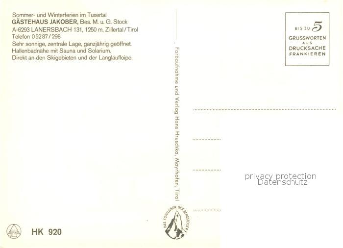 73588653 Lanersbach G?stehaus Jakober postalisch nicht gelaufen Erhaltung siehe scans [PaolaD17] KatCode: 11390335070908