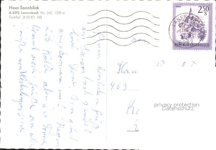 72137940 alte Postkarte Lanersbach Haus Sonnblick Pension postalisch gelaufen KatCode: 11390335070908