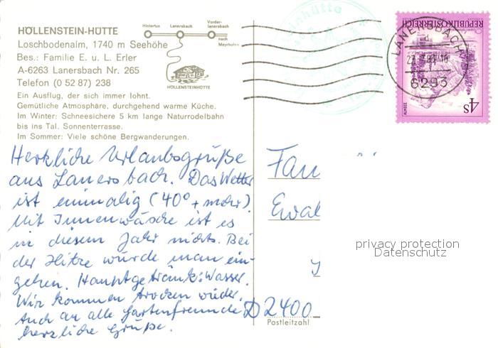 73267220 alte Postkarte Lanersbach Hoellensteinhuette Alm Kuehe postalisch gelaufen Erhaltung siehe scans [KathaD81] KatCode: 11390335070908