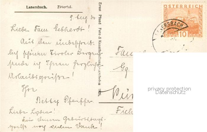 43096780 alte Postkarte Lanersbach im Zillertal postalisch gelaufen Erhaltung siehe scans [WerneD78] KatCode: 11390335070908