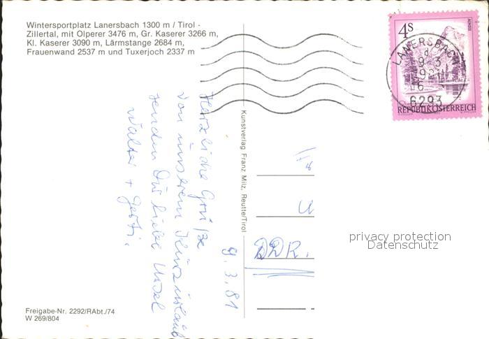 72305796 alte Postkarte Lanersbach im Zillertal Fliegeraufnahme postalisch gelaufen Erhaltung siehe scans KatCode: 11390335070908