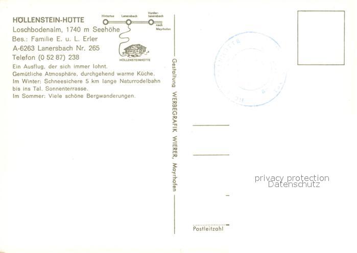 73167392 Lanersbach Loschboden-Alm Hoellensteinhuette postalisch nicht gelaufen Erhaltung siehe scans [LiesaD40] KatCode: 11390335070908