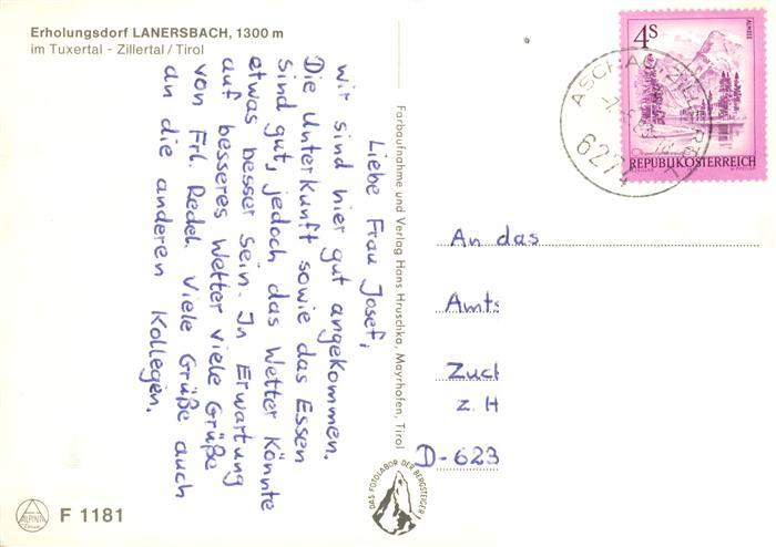 alte Postkarte Lanersbach Mayrhofen Zillertal Tirol AT Panorama postalisch gelaufen Erhaltung siehe scans [WerneD78]
