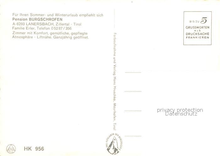 13516288 Lanersbach Pension Burgschrofen postalisch nicht gelaufen Erhaltung siehe scans [WerneD78] KatCode: 11390335070908