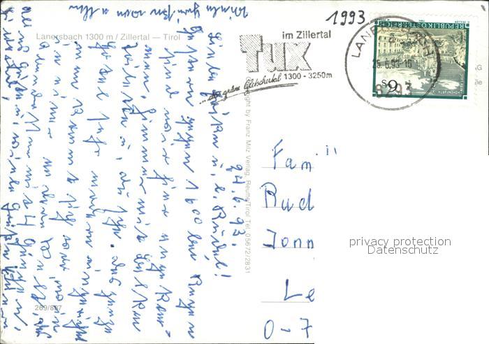72516804 alte Postkarte Lanersbach Zillertal postalisch gelaufen Erhaltung siehe scans KatCode: 11390335070908