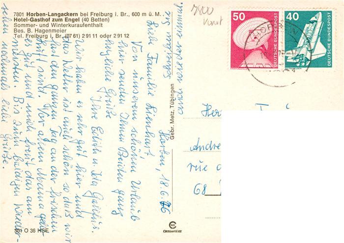 73932793 alte Postkarte Langackern Horben Hotel Gasthof zum Engel Gastraeume Panorama postalisch gelaufen Erhaltung siehe scans [WerneD78] KatCode: 11110008315056