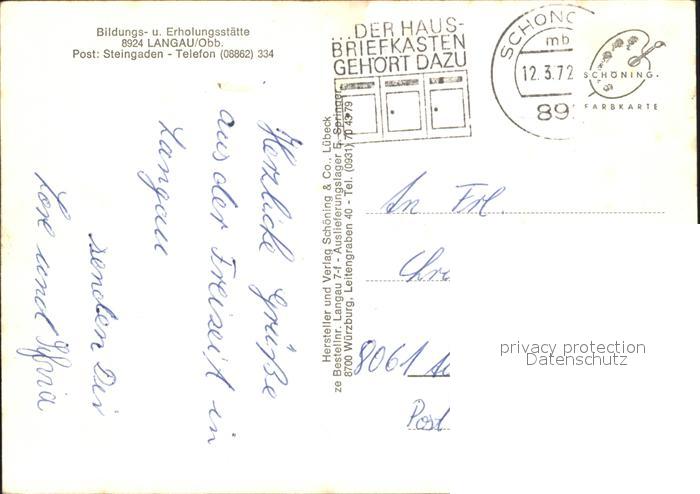 72155994 alte Postkarte Langau Oberpfalz Bildungsstaette Erholungsstaette postalisch gelaufen Erhaltung siehe scans KatCode: 11110009372150