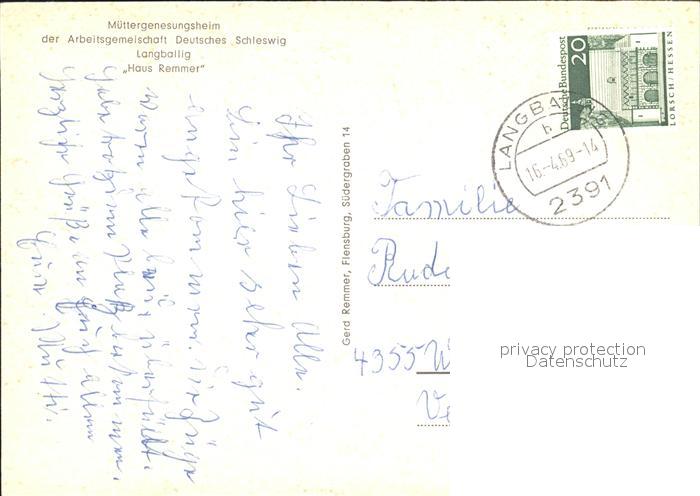 72230305 alte Postkarte Langballig Muettergenesungsheim der AG Dt Schleswig Haus Remmer postalisch gelaufen Erhaltung siehe scans KatCode: 11110001059137