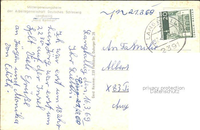 72407062 alte Postkarte Langballig Muettergenesungsheim der Arbeitergemeinschaft Deutsches Schleswig Haus Remmer postalisch gelaufen Erhaltung siehe scans KatCode: 11110001059137