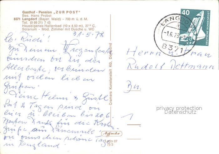 72482386 alte Postkarte Langdorf Regen Gasthaus Pension Zur Post postalisch gelaufen Erhaltung siehe scans KatCode: 11110009276129