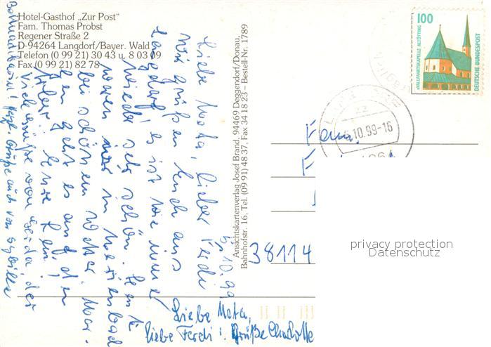 73651735 alte Postkarte Langdorf Regen Hotel Gasthof Zur Post Gaststube Panorama postalisch gelaufen Erhaltung siehe scans [WerneD78] KatCode: 11110009276129