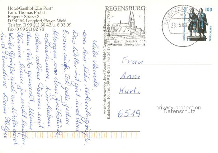 73614984 alte Postkarte Langdorf Regen Hotel Gasthof Zur Post Langdorf Gaststube postalisch gelaufen Erhaltung siehe scans [WerneD78] KatCode: 11110009276129