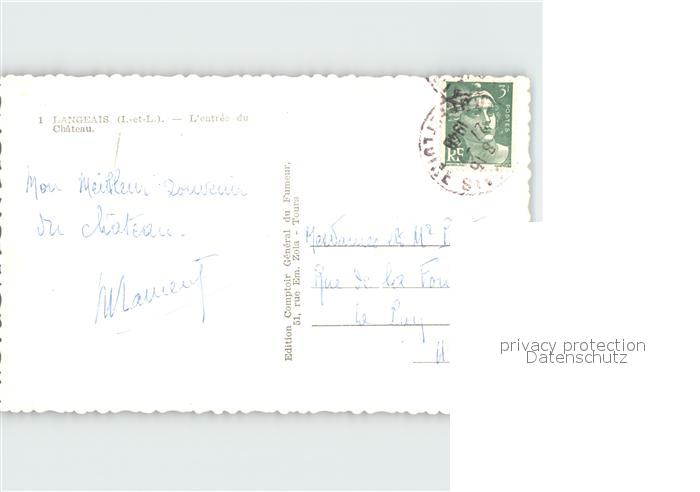12329358 carte postale Langeais Entree du Chateau postalisch gelaufen Erhaltung siehe scans KatCode: 11170037137123