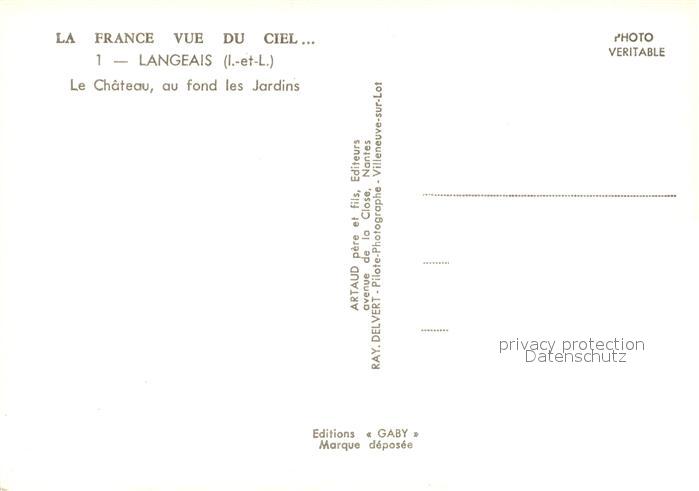 13071634 Langeais Le Chateau au fond les Jardins Vue aerienne postalisch nicht gelaufen Erhaltung siehe scans [WerneD78] KatCode: 11170037137123