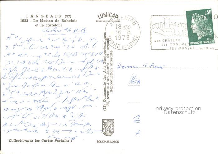 12240520 carte postale Langeais Maison de Rabelais postalisch gelaufen Erhaltung siehe scans KatCode: 11170037137123
