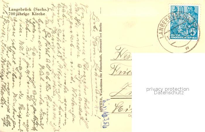 73043600 alte Postkarte Langebrueck Kirche postalisch gelaufen Erhaltung siehe scans [PaolaD17] KatCode: 11110014262000